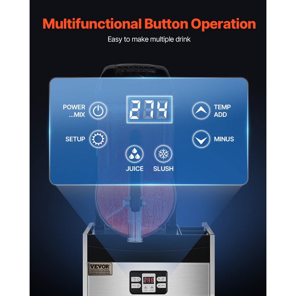 Fácil manejo: El panel de control fácil de usar permite un manejo sencillo, incluidos dos modos de configuración (granizado y bebida fría), limpieza automática, control de temperatura y configuración de tiempo. La temperatura se muestra claramente en la pantalla digital, lo que facilita su control en cualquier momento.