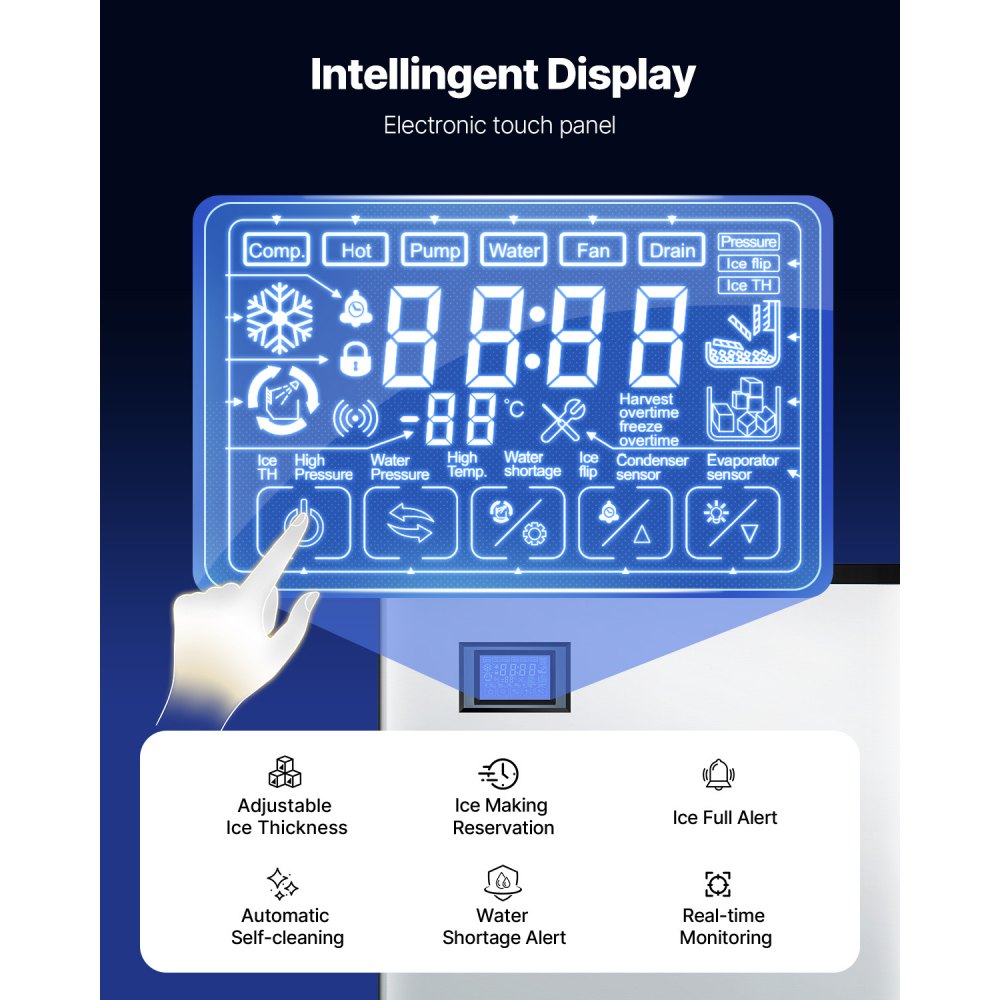 Máquina de Hielo 300 libras/24 h Máquina para Fabricar Hielo con Contenedor de Almacenamiento de 250 libras con Autolimpieza Automática Pantalla Táctil para Bar, Cafetería, Restaurante - Tecnología