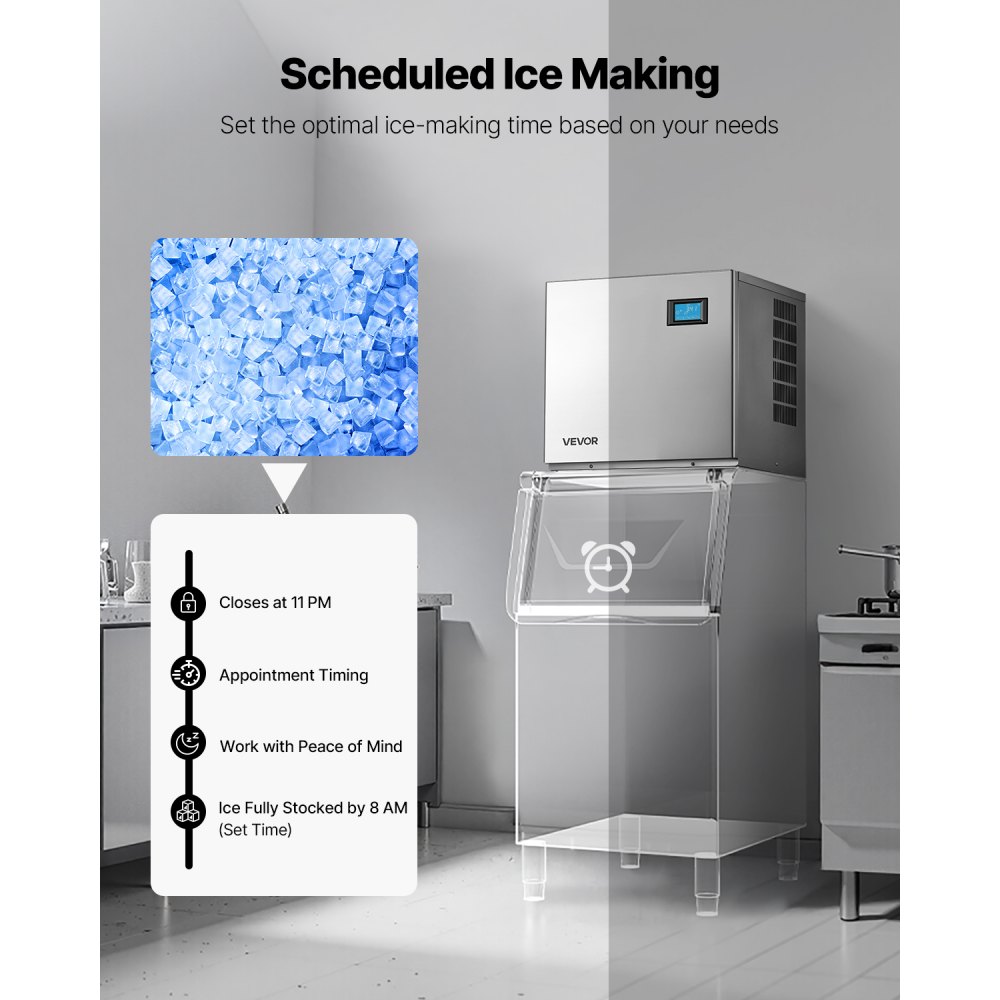 Reserva de fabricación de hielo: Con la función de reserva de la máquina de hielo comercial, puede planificar con mayor facilidad y establecer el tiempo óptimo de fabricación de hielo según las necesidades de tu negocio