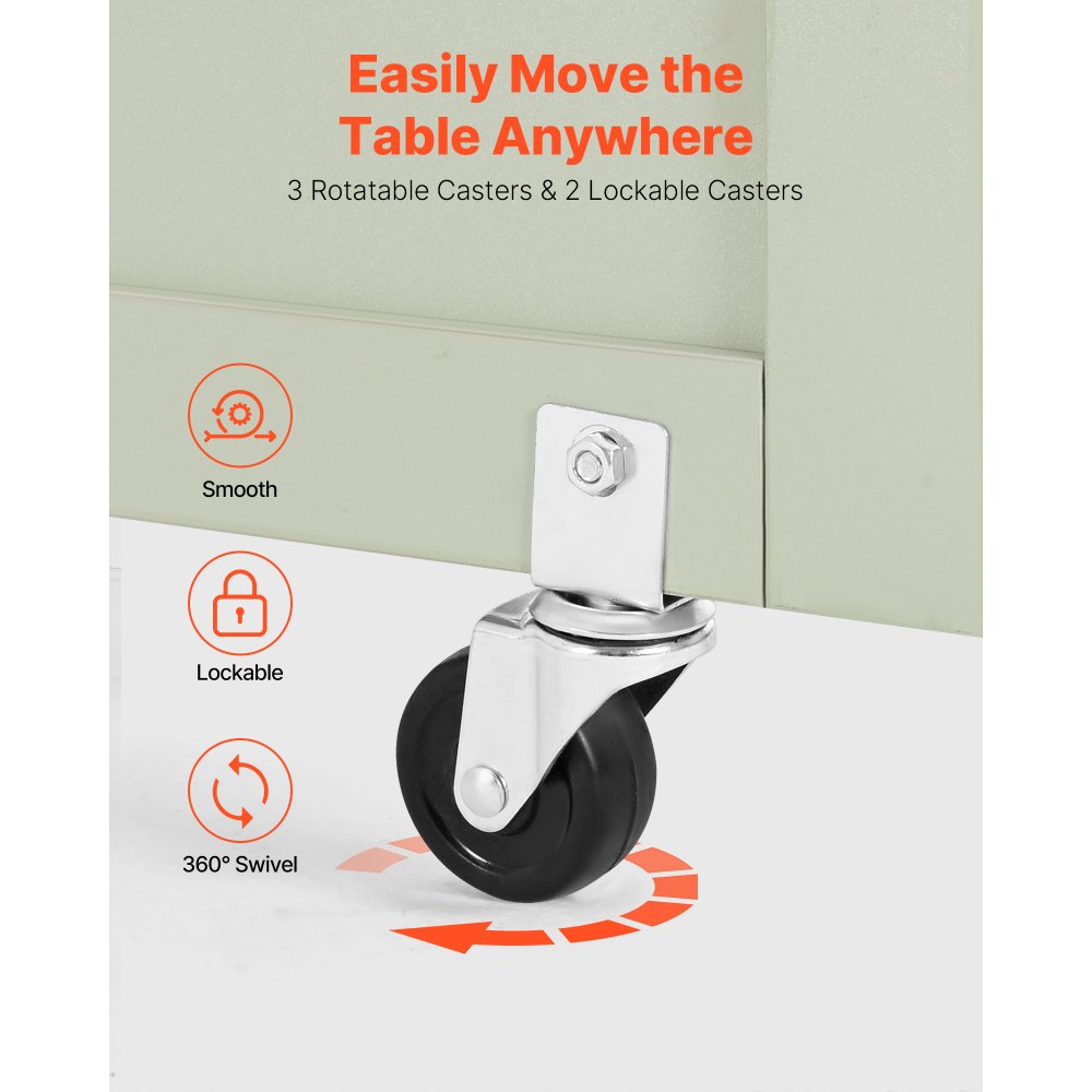 Fácil de mover: Equipada con tres ruedas giratorias de 360° y dos ruedas bloqueables, podrá mover fácilmente la mesa de costura a cualquier lugar. Las ruedas bloqueables garantizan estabilidad durante el uso, mientras que la rotación de 360° permite un movimiento flexible