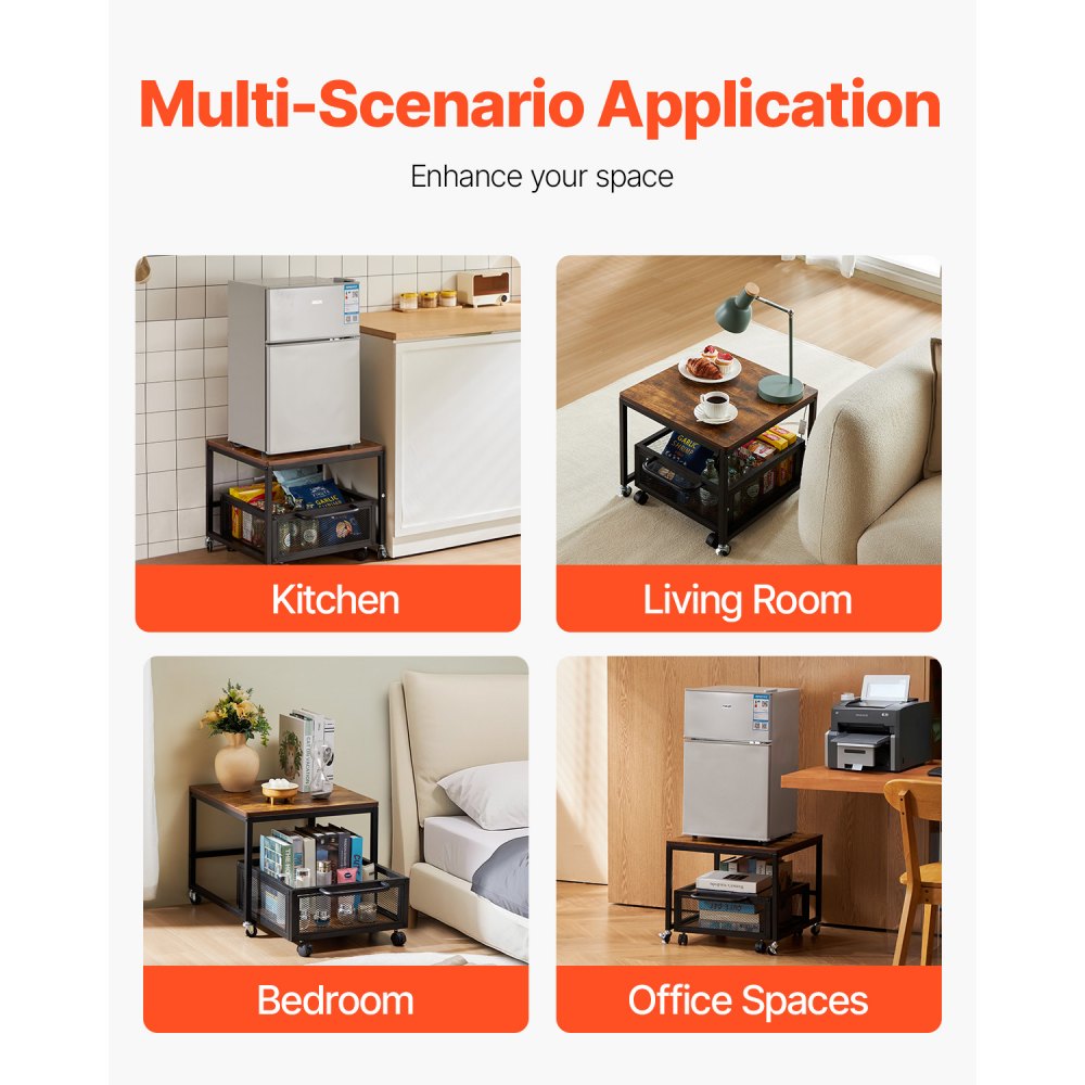 Resistente y duradero: Este mini refrigerador con espacio de almacenamiento está fabricado con tableros ecológicos de madera maciza de grado E1 engrosados y tubos de hierro reforzados, lo que ofrece una superficie resistente y estable que soporta hasta 198 lbs(90 kg). También es ideal para usar como soporte para lavadora, mesa auxiliar, soporte para impresora o carrito de herramientas