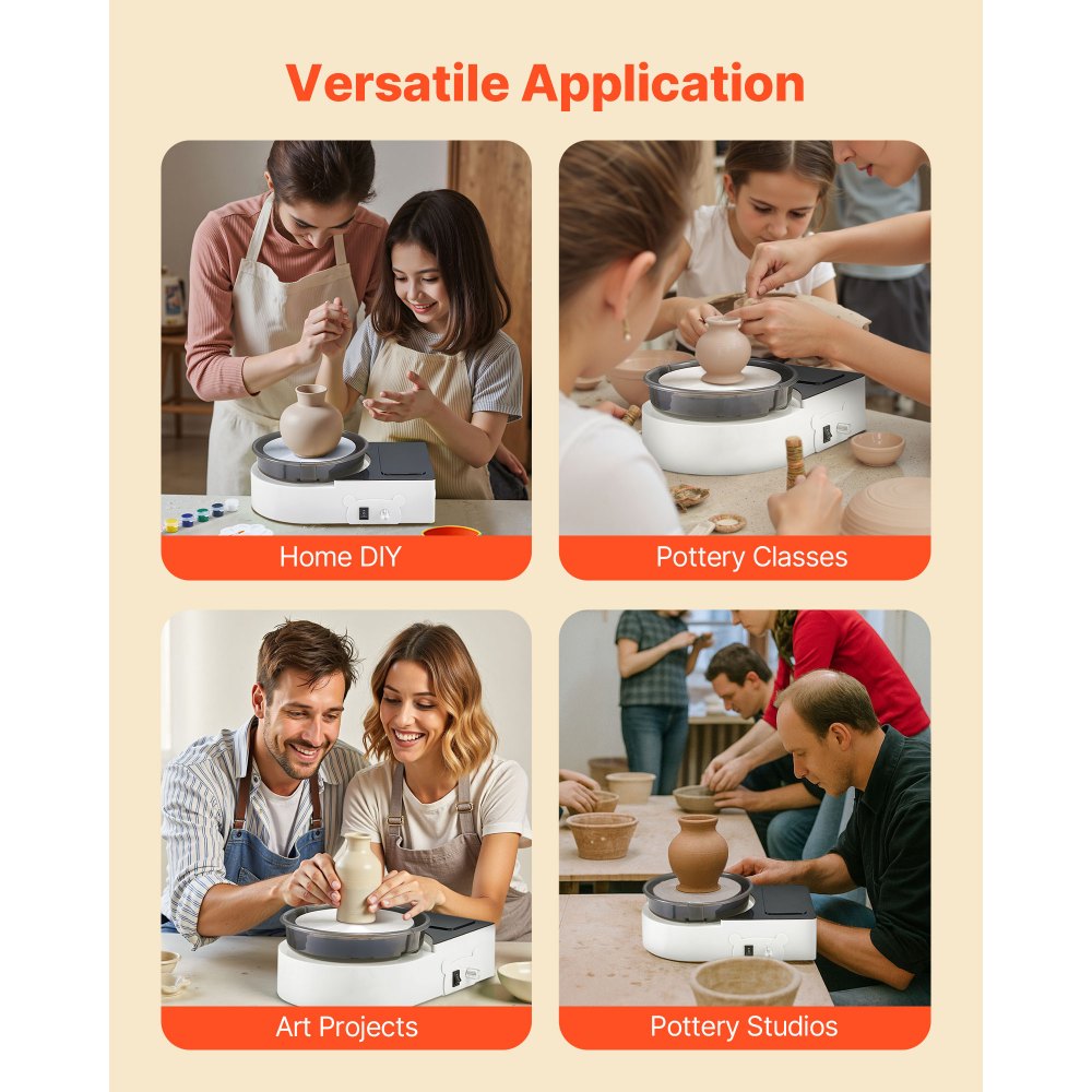 Uso versátil: El torno de alfarería para niños es ideal para proyectos de bricolaje en casa, clases de cerámica en la escuela, aficiones artísticas y trabajo de estudio. Es apto para todos los niveles, desde principiantes hasta creadores experimentados, y mantiene la inspiración fluyendo en todo momento