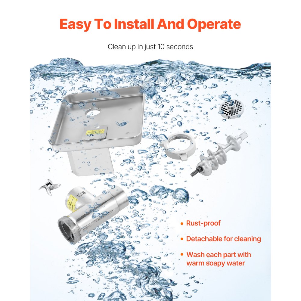 Multifunción 3 en 1: La picadora y rebanadora de carne comercial tiene un calibre n.° 12, lo que la convierte en una máquina versátil para picar carne y verduras sin atascarse. Rebana, desmenuza y corta en cubitos de manera uniforme con un resultado consistente, logrando resultados de carne uniformes y un relleno de salchichas más eficiente, ideal para preparar rápidamente diversas salchichas y embutidos