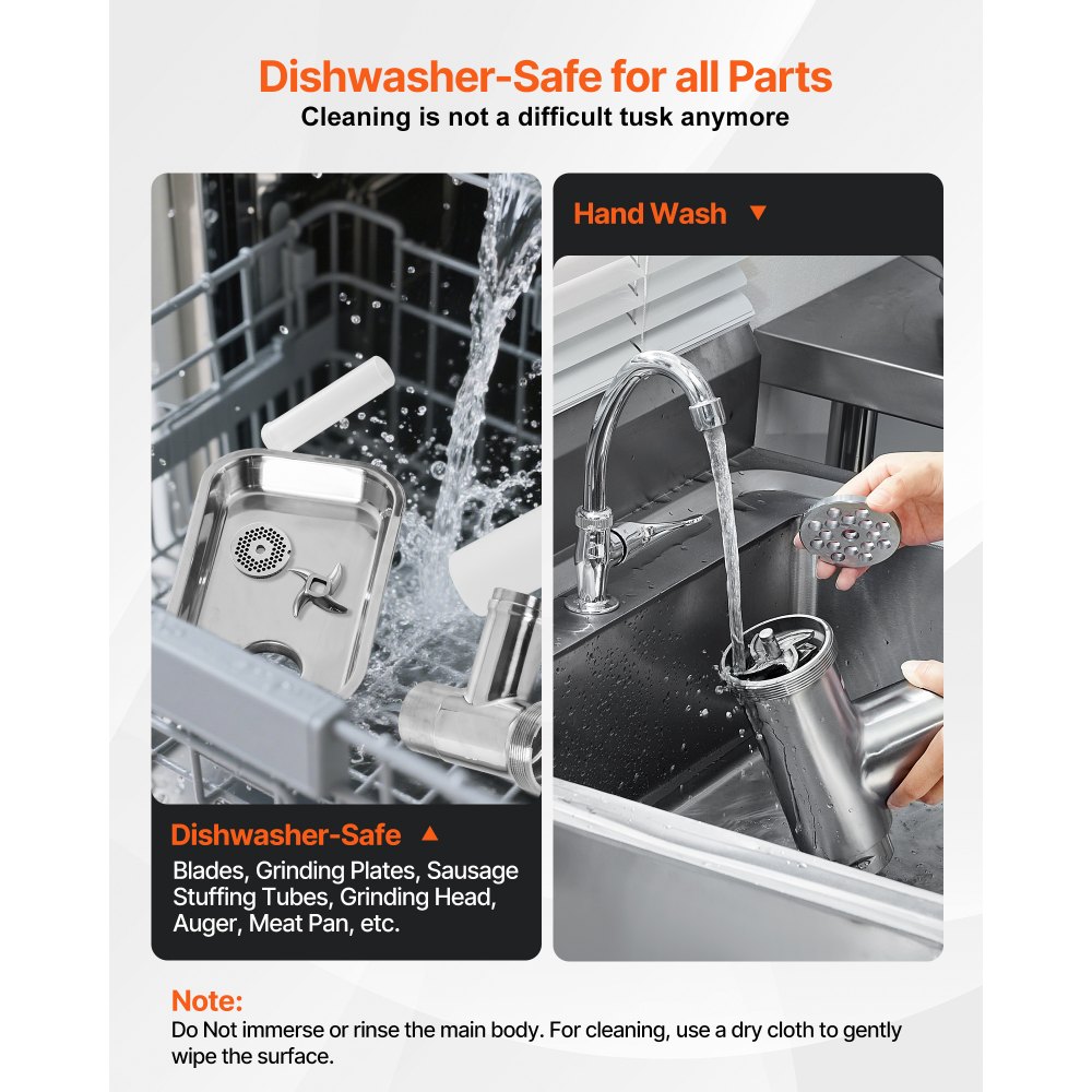Picado rápido de carne: la picadora de carne de mostrador comercial, con boca de tamaño n.° 5, cuenta con un motor de cobre puro de 300 W de alta eficiencia capaz de picar 5 libras de carne por minuto. Puede funcionar de forma continua sin interrupciones, lo que la hace ideal para necesidades de picado de carne comercial a gran escala. Evite dejar la picadora inactiva durante demasiado tiempo, ya que puede dañar el motor. Recuerde apagarla de inmediato cuando no esté en uso.