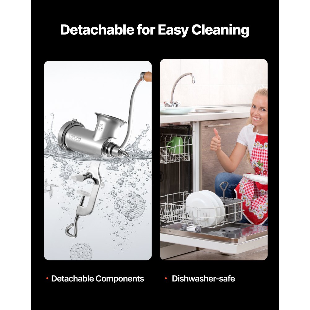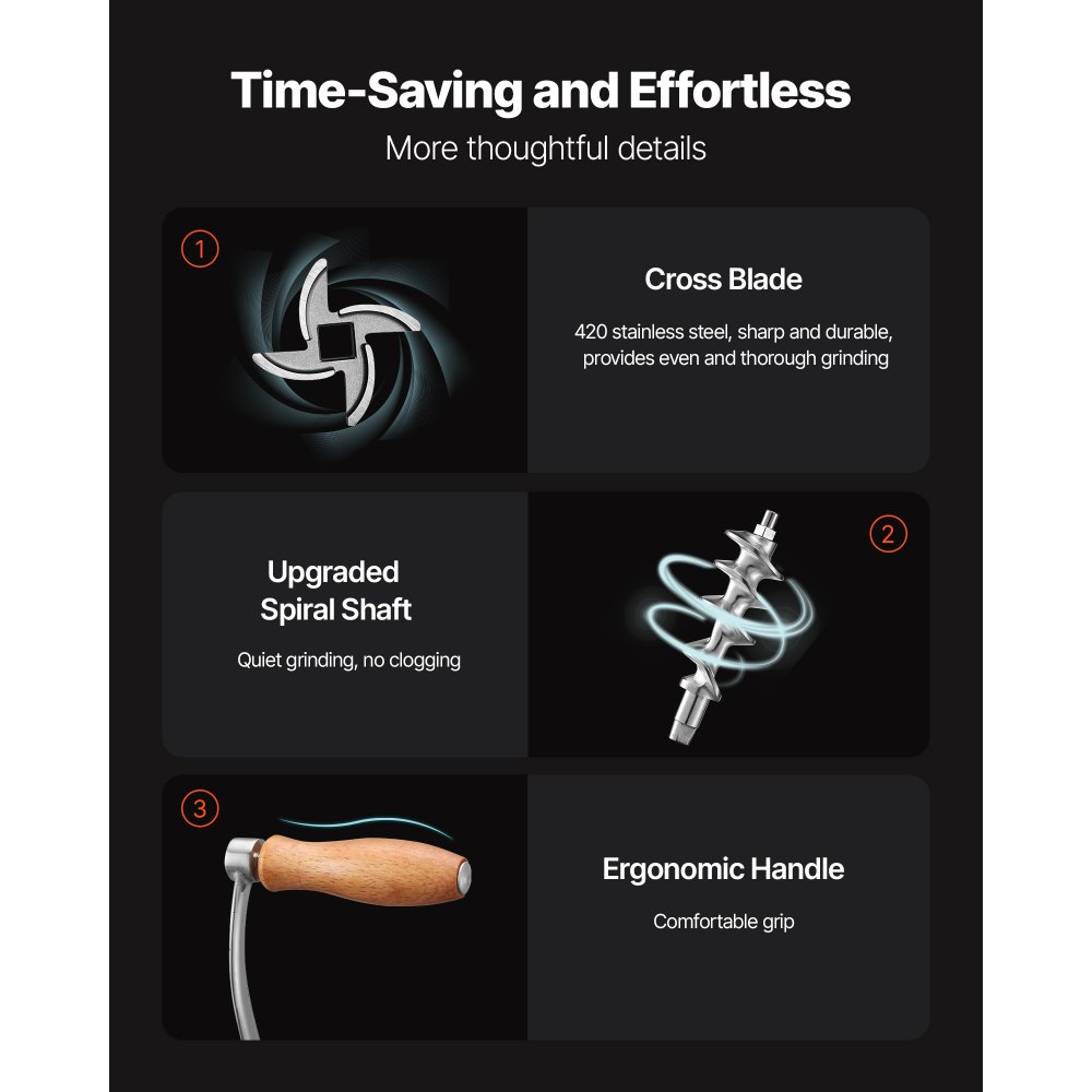 Acero Inoxidable Apto para Uso Alimentario: Todas las piezas de nuestra picadora de carne manual están hechas de acero inoxidable apto para uso alimentario, lo que proporciona una excelente resistencia a la oxidación y la corrosión y contribuye a su apariencia elegante. Con este material de alta calidad, esta máquina le ofrece un método saludable y seguro para garantizar que sus alimentos permanezcan higiénicos mientras reduce los costos de mantenimiento