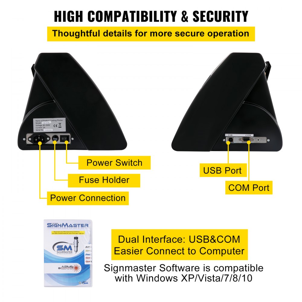 Compatibilidad Versátil: Este vinilo cortador de plotter incluye el software Signmaster con una interfaz USB y un puerto COM para facilitar la conexión. Admite varios idiomas DM/PL, HP/GL. Sistema: PC con procesador Pentium o computadoras como Windows XP/Vista/7/8/10, ARTCUT, Graph-Cut, Signcut, Signmaster, Flexi, Coreldraw. NO es compatible con el sistema Mac.