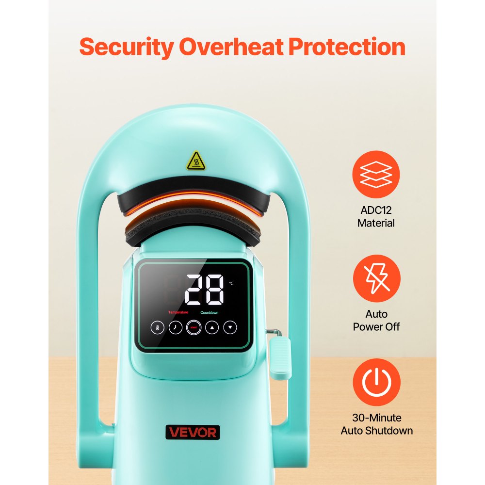 Diseñada para mayor seguridad y durabilidad: La prensa térmica para gorras está fabricada con aleación ADC12 de primera calidad para un calentamiento rápido y uniforme. El apagado automático evita el sobrecalentamiento y la función de apagado automático tras 30 minutos de inactividad proporciona mayor seguridad y ahorro de energía durante su uso