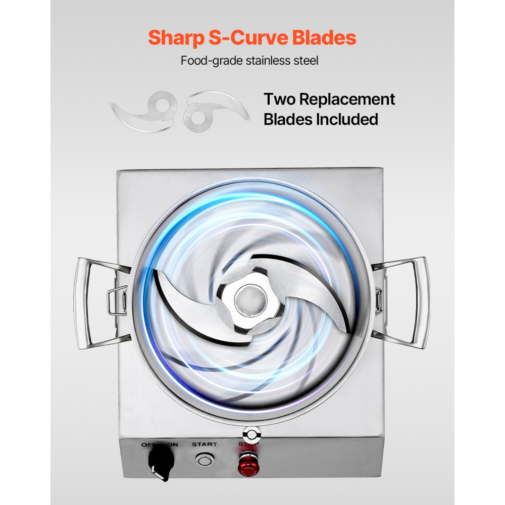 Multifuncional: Este procesador de alimentos comercial multifunción cuenta con cuchillas afiladas en forma de S hechas de acero inoxidable 420J2 e incluye dos cuchillas para mayor comodidad. Perfecto para picar diversos ingredientes, incluidas verduras y frutas.