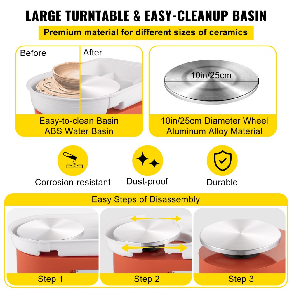 Rueda Eléctrica para Cerámica, 25 cm Máquina Eléctrica de Cerámica 280 W Torno Alfarero 300 rpm Torno Cerámica Alfarero Máquina Arcilla con Control Pedal Independiente - Tecnología