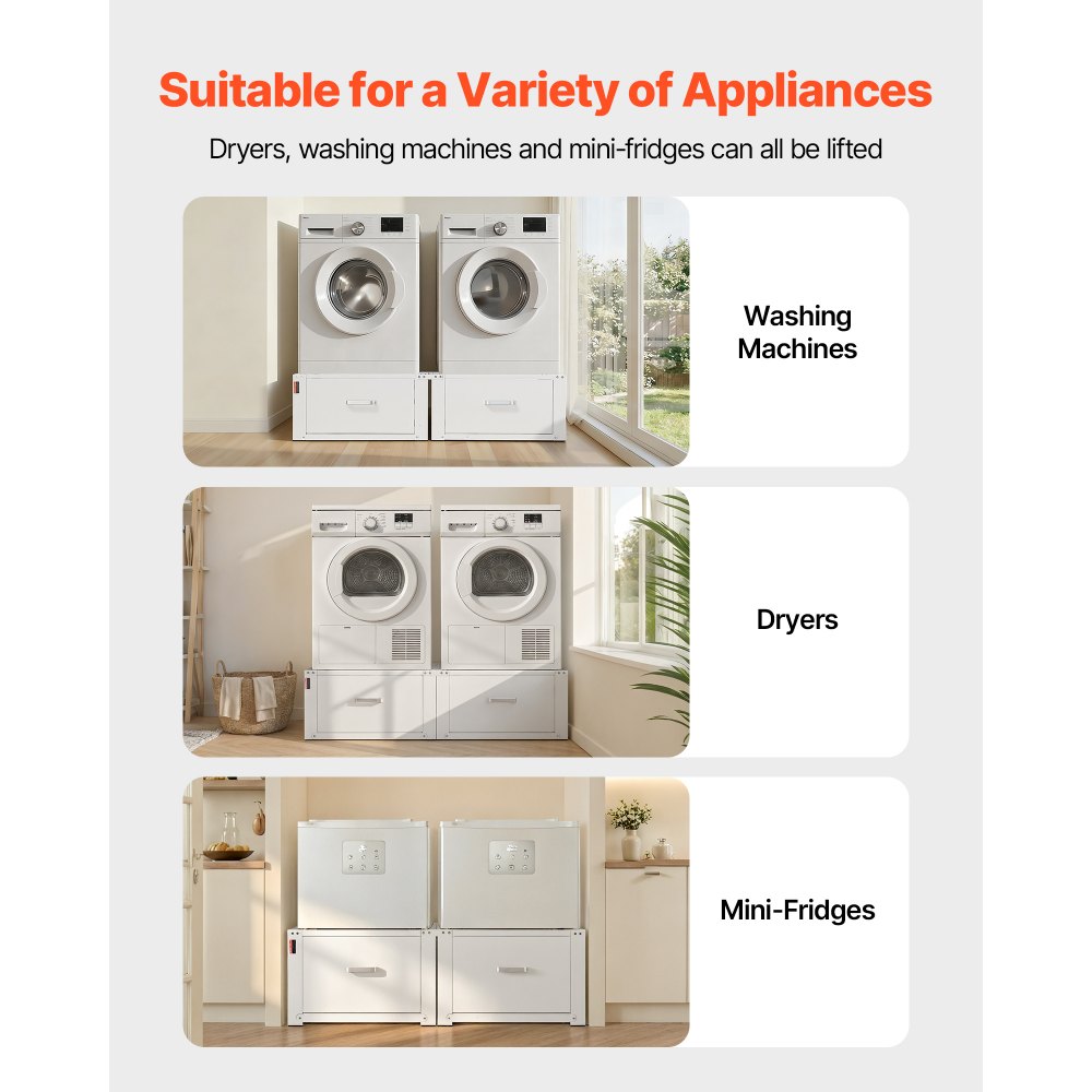 Compatibilidad precisa: Este soporte para lavadora es ampliamente compatible con las principales marcas de electrodomésticos como Samsung, LG, Whirlpool, GE, Miele, Electrolux, Bosch y más