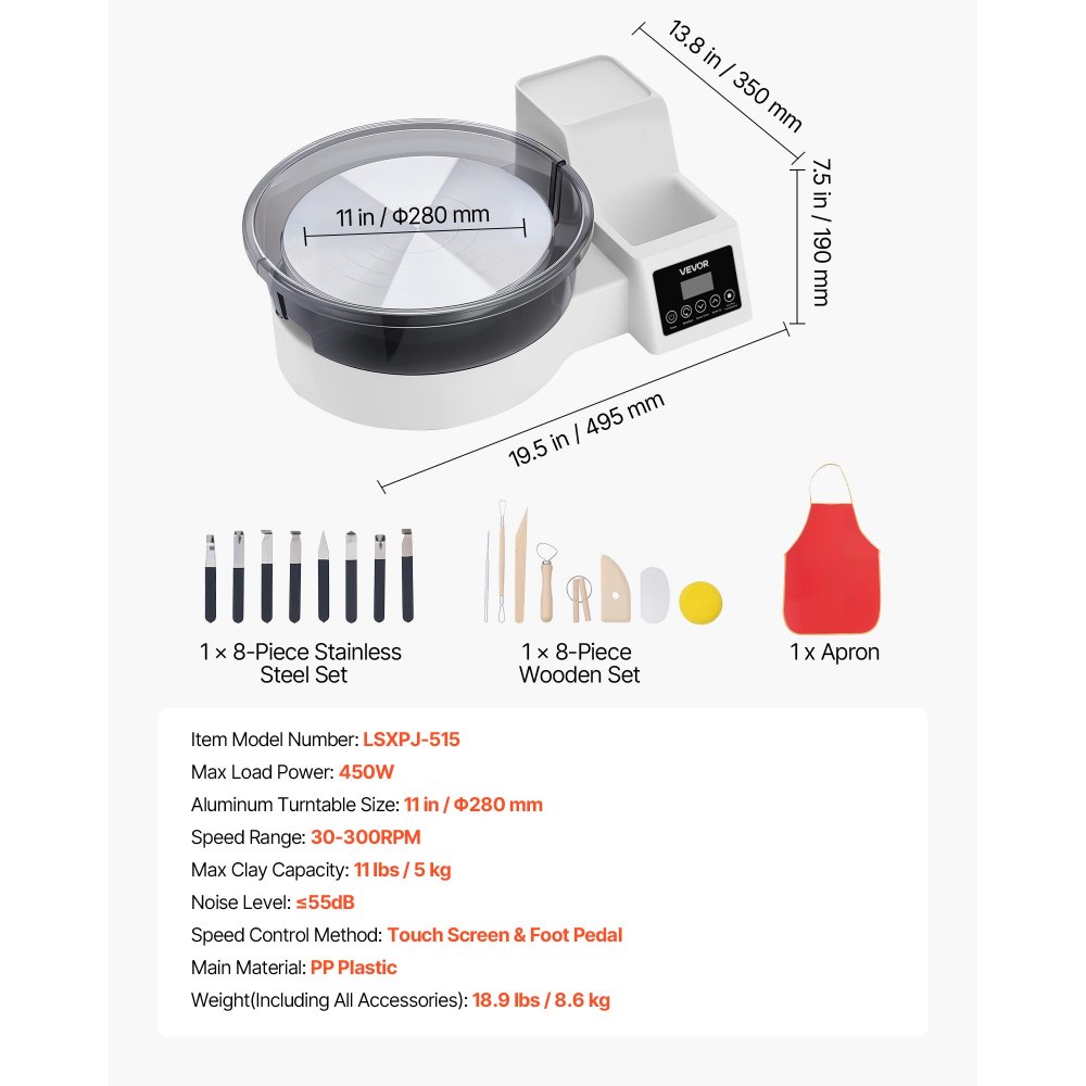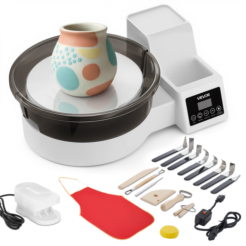 Espacio de trabajo amplio y resistente: Diseñado para principiantes con aspiraciones altas, este torno de alfarero cuenta con un plato giratorio de 28 cm que brinda un espacio amplio para modelar. El motor de 450 W es potente de manejar hasta 5 kg de arcilla, lo que permite alcanzar resultados finos