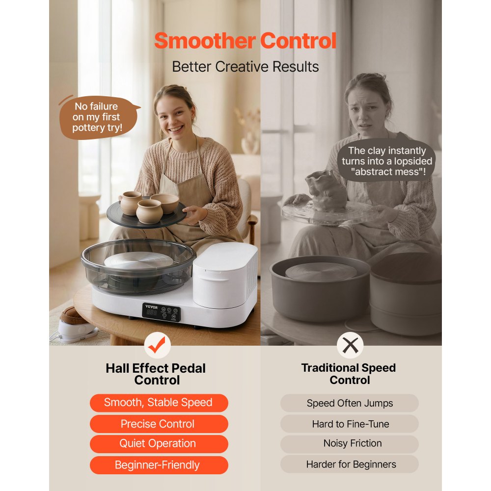 Espacio de trabajo amplio y resistente: Diseñado para principiantes con aspiraciones altas, este torno de alfarero cuenta con platos giratorios de 28 y 36 cm que brindan espacios amplios para modelar. El motor de 450 W es potente de manejar hasta 5 kg de arcilla, lo que permite alcanzar resultados finos