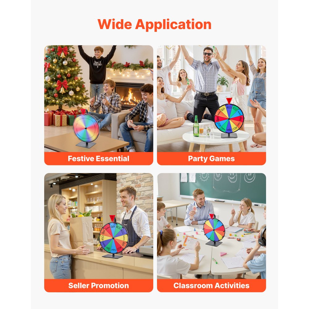 Prispôsobiteľné a upraviteľné: 12 slotov na prispôsobenie hier. Hladká, prepisovateľná hracia doska so žiarivými farbami zaručí, že vaše výherné koleso vynikne na každej udalosti.
