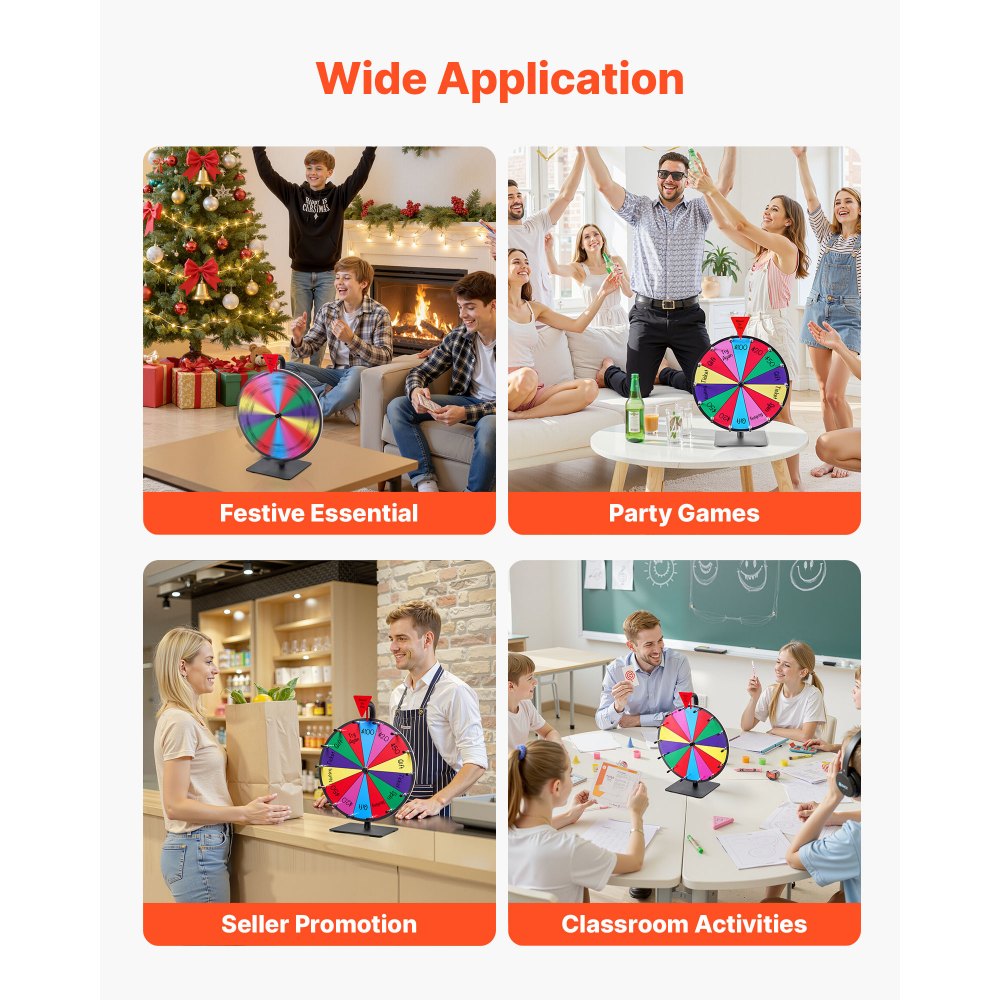 Prispôsobiteľné a upraviteľné: 14 slotov na prispôsobenie vašich hier. Hladká, prepisovateľná hracia doska so žiarivými farbami zaručí, že vaše koleso výhier vynikne na každej udalosti.