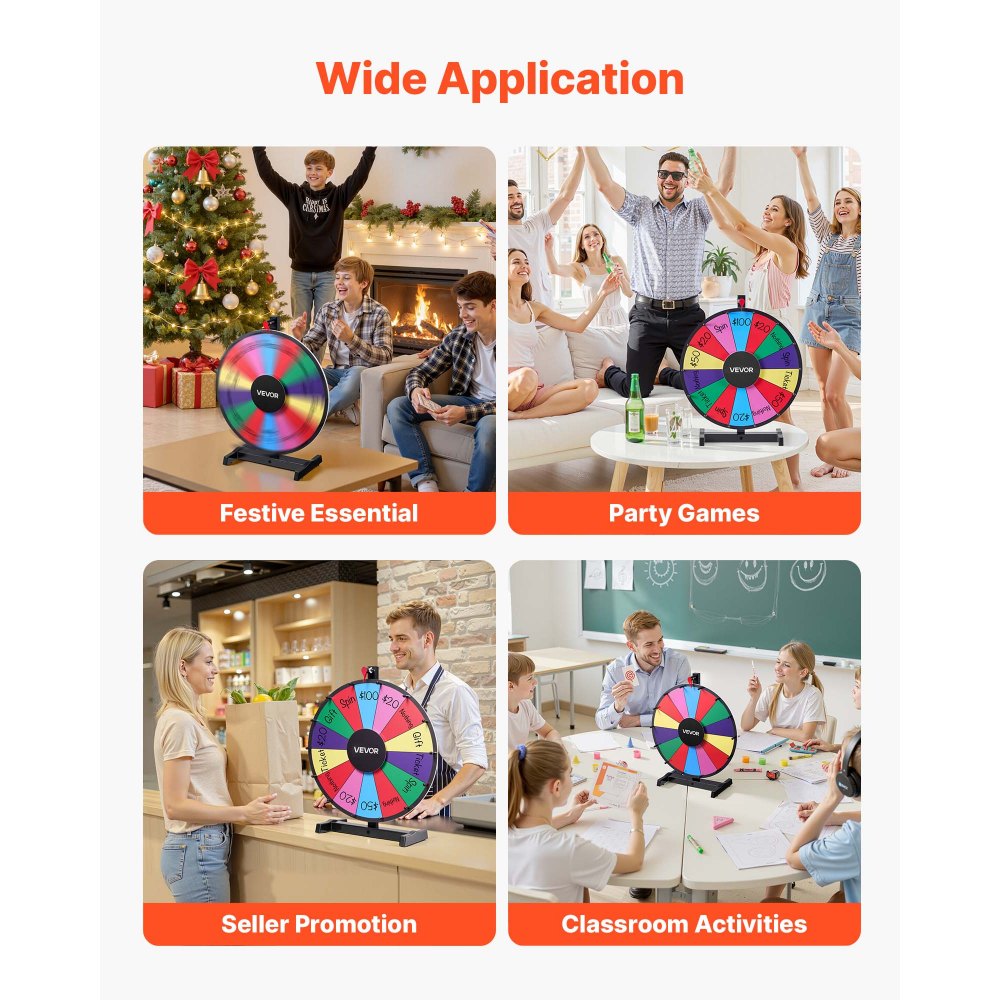 Prispôsobiteľné a upraviteľné: 14 slotov na prispôsobenie vašich hier. Hladká, prepisovateľná hracia doska so žiarivými farbami zaručí, že vaše koleso výhier vynikne na každej udalosti.