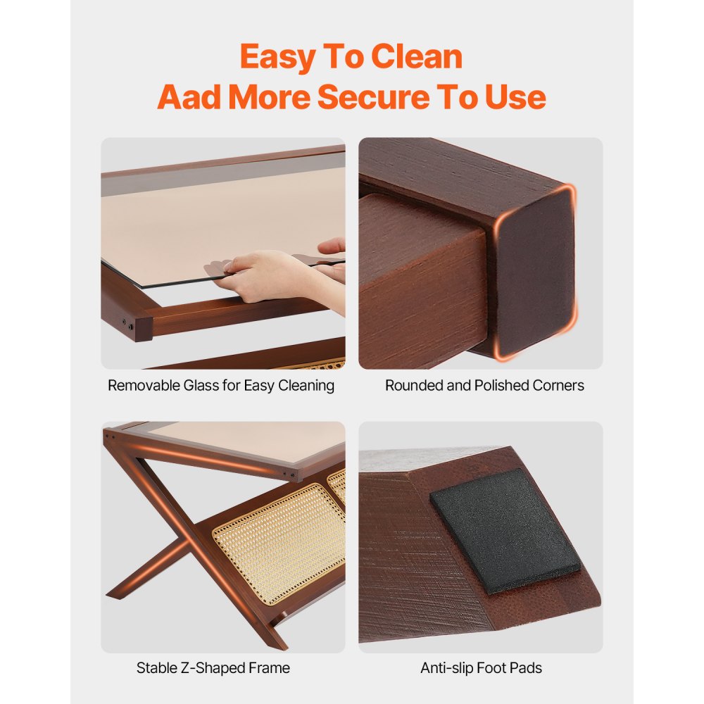 Jednoduchá montáž a čistenie: Tento bambusový konferenčný stolík má všetko potrebné príslušenstvo a podrobný návod, čo umožňuje rýchlu montáž za približne 15 minút. Jeho odnímateľná sklenená doska sa ľahko čistí - stačí ju utrieť vlhkou handričkou.