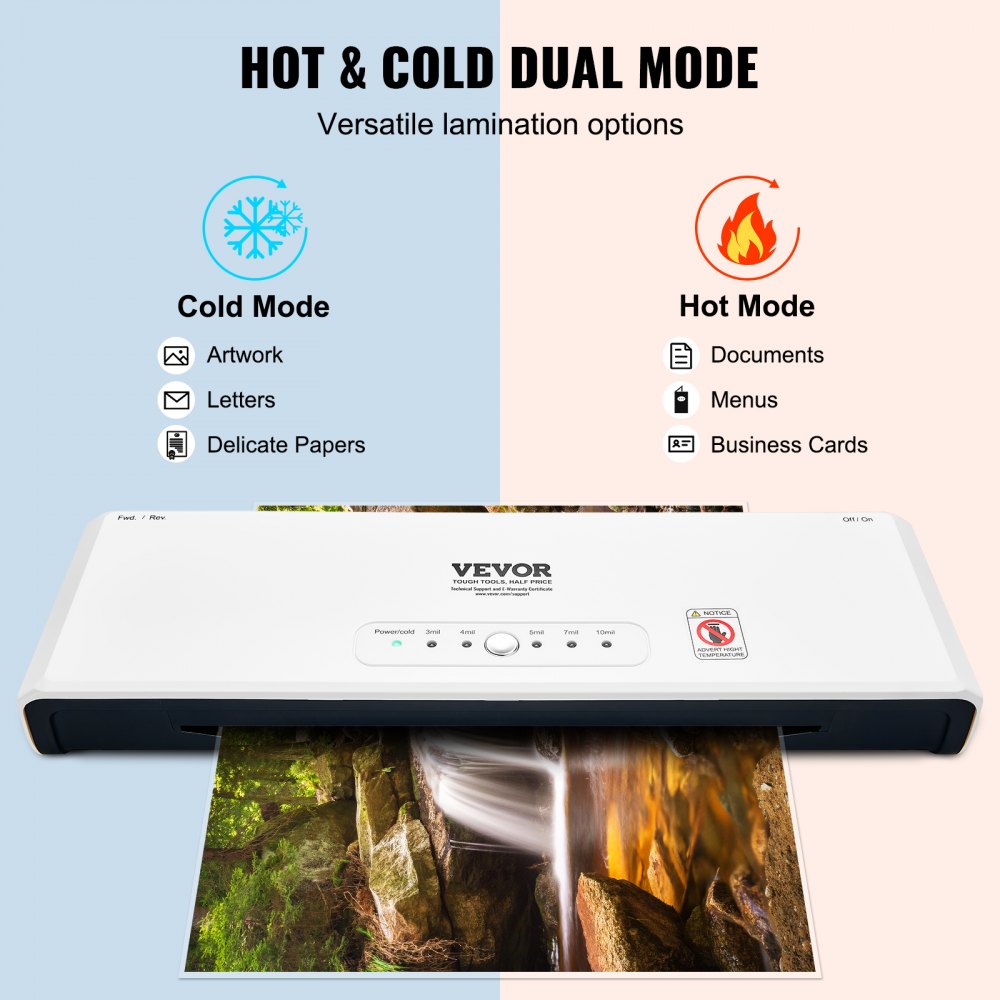 Všestranné využitie: Či už ide o domáce, kancelárske alebo školské úlohy, termálny laminátor VEVOR splní vaše potreby na ochranu umeleckých diel, certifikátov, pohľadníc, fotografií, preukazov totožnosti, etikiet a ďalších materiálov.
