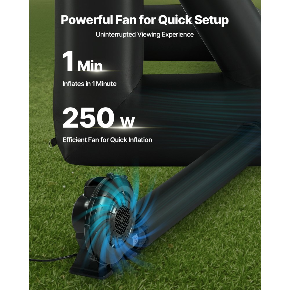 Nafukovacie filmové plátno VEVOR 16 stôp, umývateľné nafukovacie projekčné plátno 600D s prenosným úložným vreckom, ľahko nastaviteľný filmový projektor 16:9 pre vonkajšiu záhradu, domáce kino, tematickú párty, zábavu pri bazéne