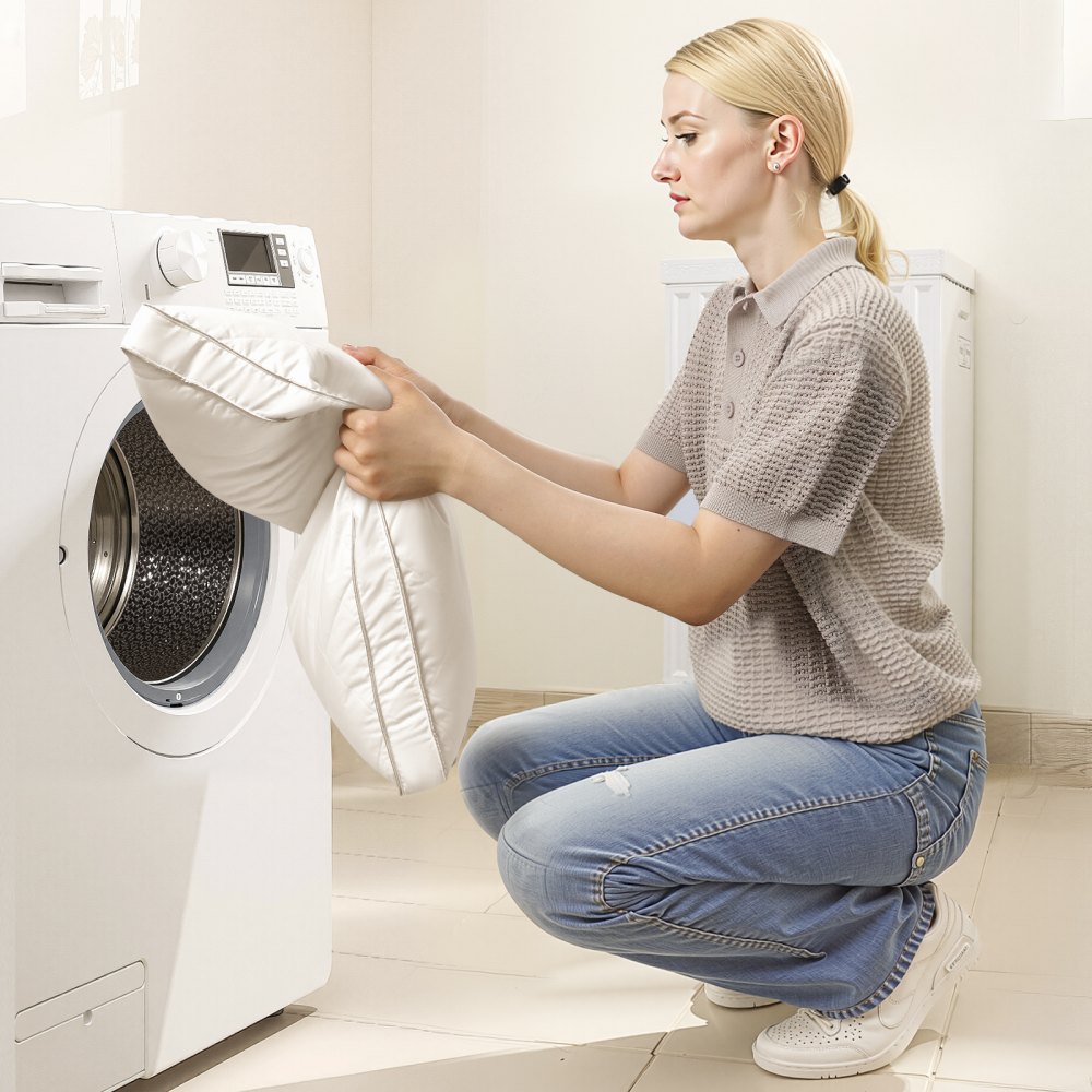 Jednoduché čistenie: Odnímateľný obliečkový poťah na vankúš sa dá prať v práčke – stačí použiť jemný prací prostriedok a zvoliť šetrný cyklus (max. 30 °C). Nechajte uschnúť naplocho. Skvelé do spální, internátov alebo ako darček – zostaňte čistí, útulní a pripravení na pokojný spánok.