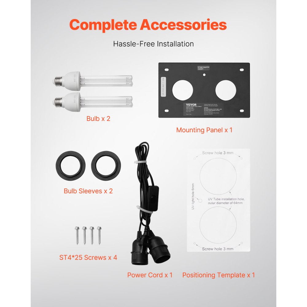 Čistička vzduchu VEVOR HVAC pre celý dom, 50W 5 palcov, UV UVC svetlo do potrubia pre klimatizačné potrubie, čistička vzduchu s 2 náhradnými žiarovkami, UV svetlá HVAC pre klimatizačné systémy
