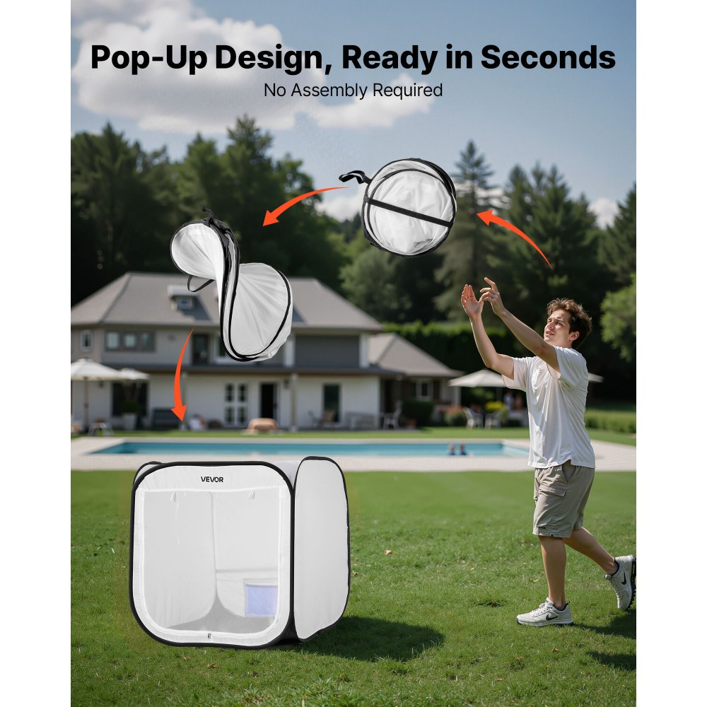 Ľahký a prenosný: Vyskakovací stan VEVOR je vyrobený z ľahkého polyesteru a dodáva sa s návodom na skladanie. Dá sa rýchlo zbaliť do priloženého úložného vrecka, vďaka čomu je prenášanie a skladovanie bezproblémové a pohodlné.