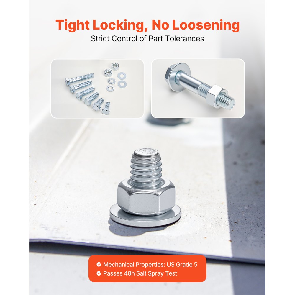 Sada skrutiek a matíc VEVOR 566 ks, imperiálne skrutky s hlavou a ploché podložky, legovaná oceľ 1/4-20, 5/16-18, 3/8-16, na montáž nábytku/zariadení/vozidiel, pozinkované biele