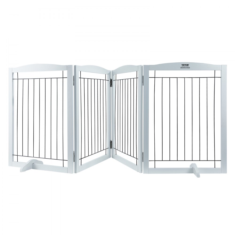 Samostatne stojaca brána pre psa VEVOR, 81 cm V x 244 cm Š, voľne stojaca brána pre domáce zvieratá, 4-panelová skladacia brána pre široké a úzke priechody, rozšíriteľná bariéra pre psa s tichou opierkou nôh do interiéru, biela