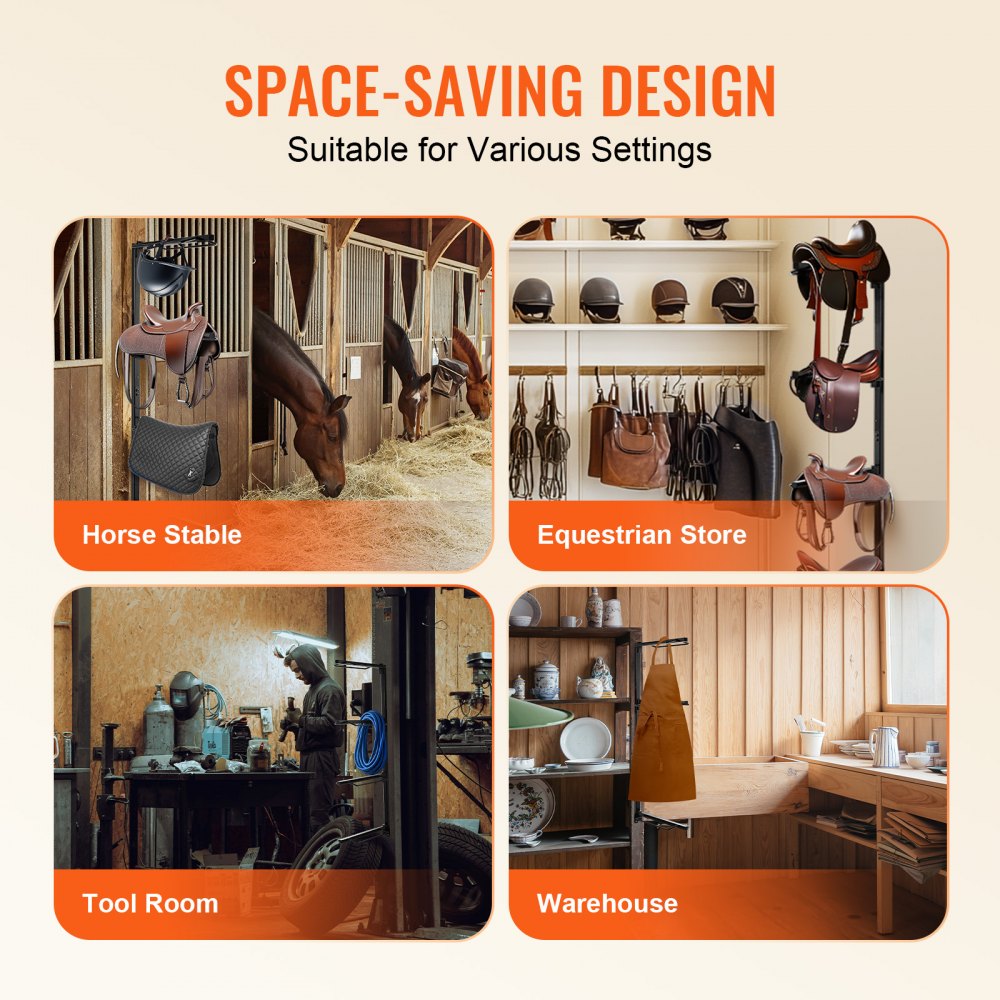 Nástenný stojan na sedlá VEVOR, 24 x 7 x 52 palcov, štvorúrovňový stojan na sedlá pre kone, odolný stojan na sedlá pre westernové a anglické jazdenie, držiak na deky pre kone na organizáciu miestnosti s potrebami pre sedlá - Poľnohospodárska a lesnícka technika