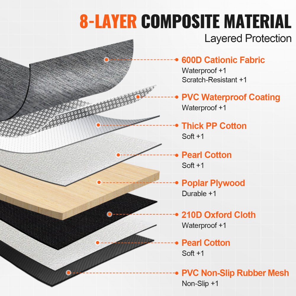 Viacvrstvová ochrana: Tento poťah na autosedačku pre psov s tvrdým dnom na zadné sedadlo je vyrobený z 8 vrstiev vrátane vodeodolnej a proti poškriabaniu odolnej látky a je navrhnutý tak, aby odolal každodennému opotrebovaniu a predlžoval tak svoju životnosť.