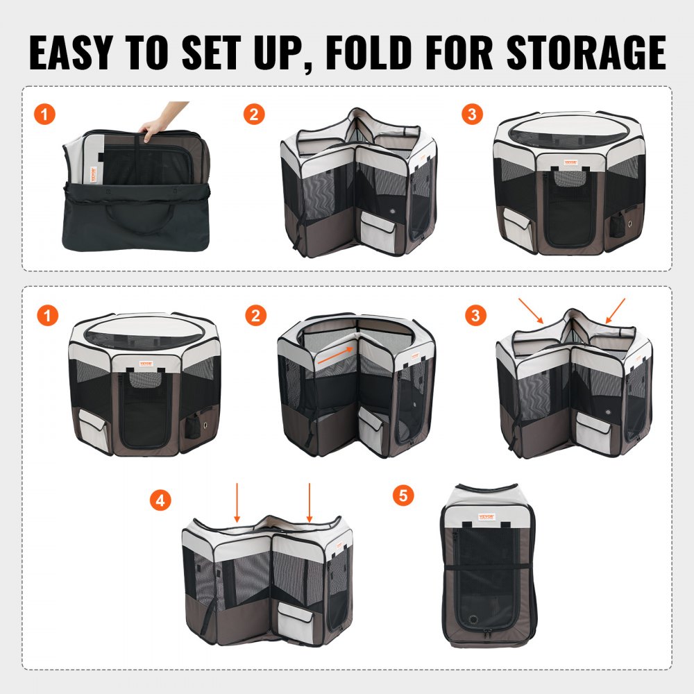 Skladacia ohrádka pre domáce zvieratá VEVOR, prenosná ohrádka pre psov s priemerom 36 palcov, prepravka pre šteniatka, psa, mačku, prémiová vodeodolná oxfordská látka 600D, odnímateľný zips, na vnútorné a vonkajšie použitie, cestovanie a kempovanie (osemuholník, M)