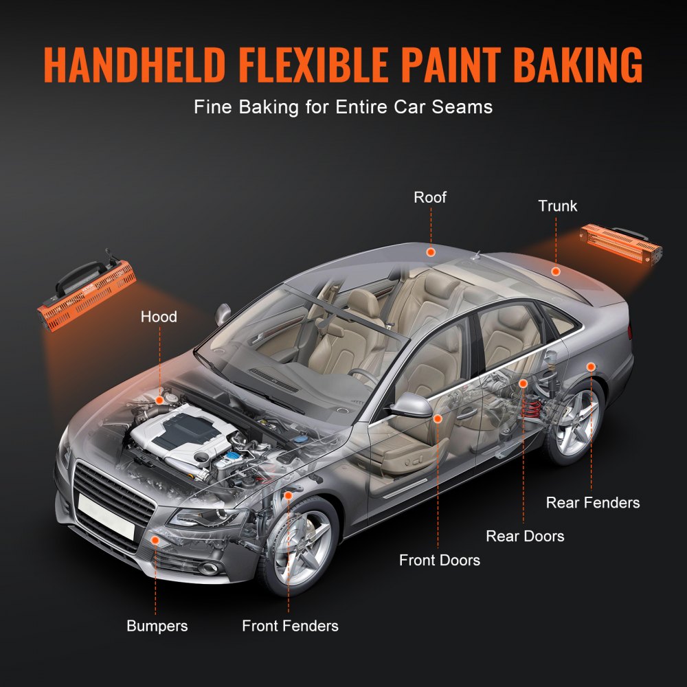 Infračervená vytvrdzovacia lampa VEVOR, 1000W vysoký výkon, ručné vykurovacie svetlo do auta, ohrievače kabín na pečenie s rozlohou 2,48 štvorcových stôp, sušička farieb na opravy na mieste, sušenie motora - Ručné náradie