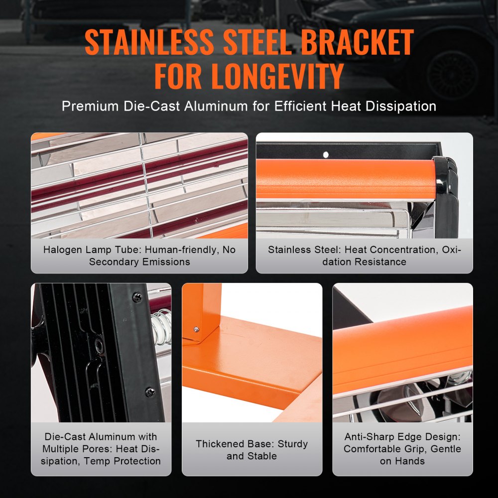 Infračervená vytvrdzovacia lampa VEVOR, 3300W, časovanie 1-60 min, automatické vykurovanie, vytvrdzovacia lampa do auta s držiakom, plocha na pečenie 8,61 štvorcových stôp, ohrievače striekacej kabíny, sušič laku na opravu na mieste, sušenie motora 1 balenie - Ručné náradie