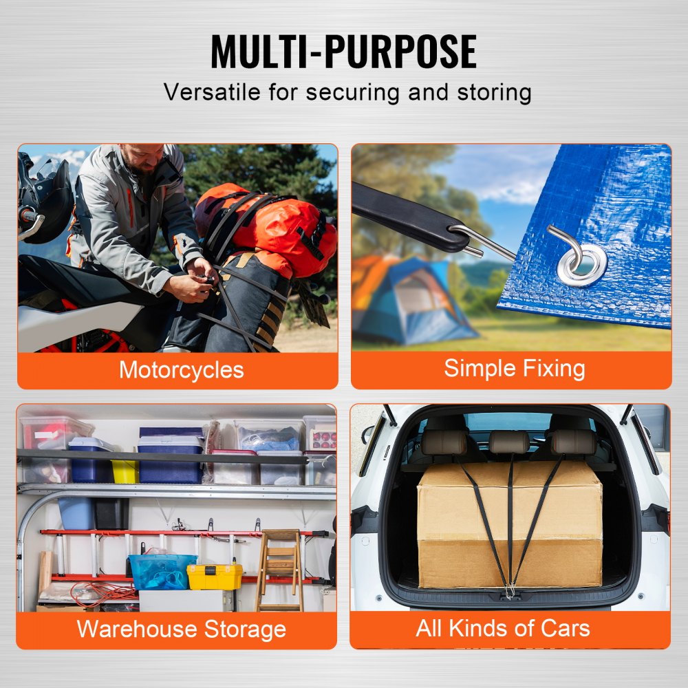 Všestrannosť: Tieto bungee popruhy sú vhodné na organizáciu domácnosti, outdoorové dobrodružstvá alebo logistiku, ľahko zvládnu akúkoľvek úlohu a spĺňajú širokú škálu potrieb na zabezpečenie alebo skladovanie predmetov.