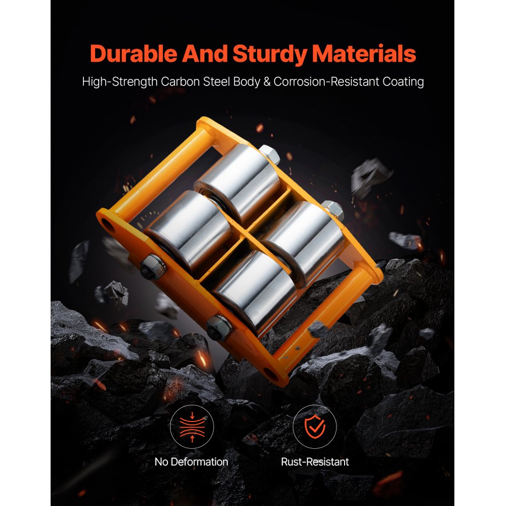 26455LBS/12T Ohromujúce nakladanie: VEVOR ťažký strojový korčuliarsky vozík dokáže bez námahy naložiť a prepraviť ťažký priemyselný náklad 26455LBS/12T, ako sú stroje, priemyselné zariadenia, nadrozmerné kartóny a ďalšie. Celá konštrukcia je vystužená bezpečnostnými skrutkami a je robustnejšia, aby zaistila bezpečnú a stabilnú prepravu tovaru. Zložte náklad z ramena a znížte náklady na manuálnu prácu počas procesu manipulácie.