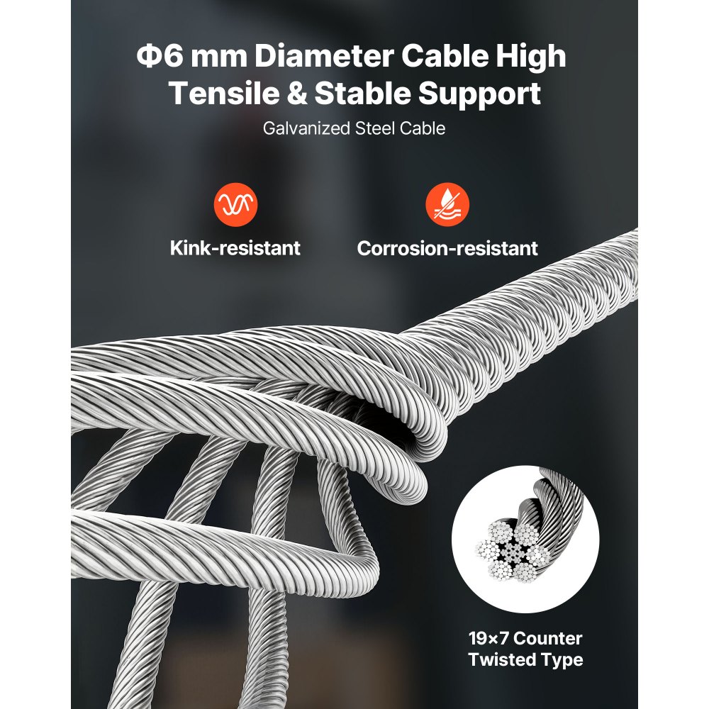Robustná konštrukcia s lanom: Tento prenosný navijak s elektrickým pohonom obsahuje vysokopevnostné pozinkované oceľové lano, ktoré je odolné voči skrúteniu a korózii. Lano pomáha predchádzať zalomeniu a podporuje bezpečnejšiu dlhodobú prevádzku.