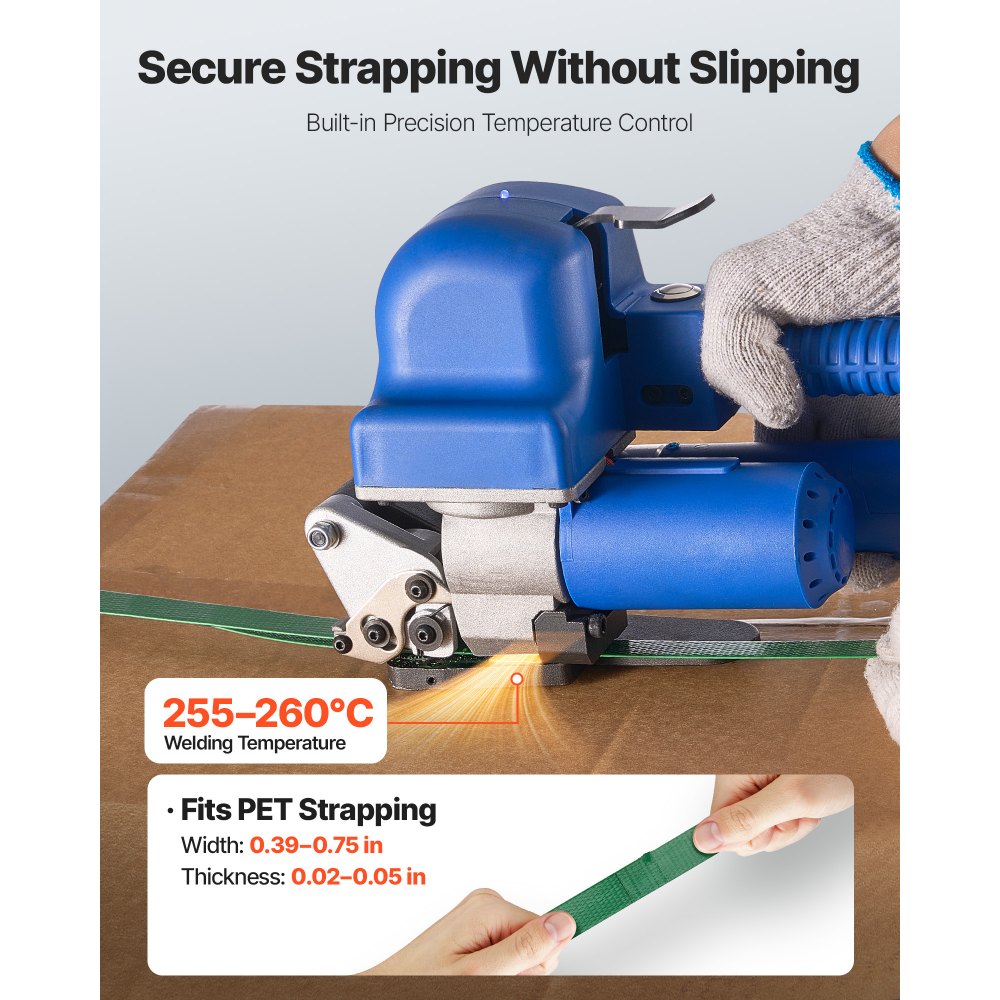 Elektrický páskovací stroj VEVOR, 2 x 4000 mAh batérie, automatický páskovač s digitálnym displejom pre PET pásky šírky 10-19 mm, napínací stroj na páskovanie baliacich boxov a paliet - Skladovacie a manipulačné zariadenia