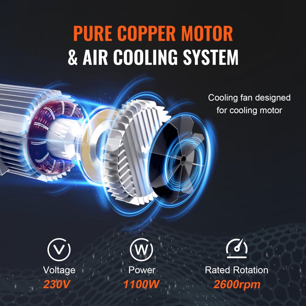 Výkonný motor: Medený motor poskytuje výkon 1100 W na manipuláciu s ťažkými bremenami bez deformácie. Veľký ventilátor chladiča udržiava elektrický reťazový kladkostroj chladný, aby sa predišlo prehriatiu. Všetky tieto funkcie zaisťujú efektívnu prácu a šetria vám viac času a energie.