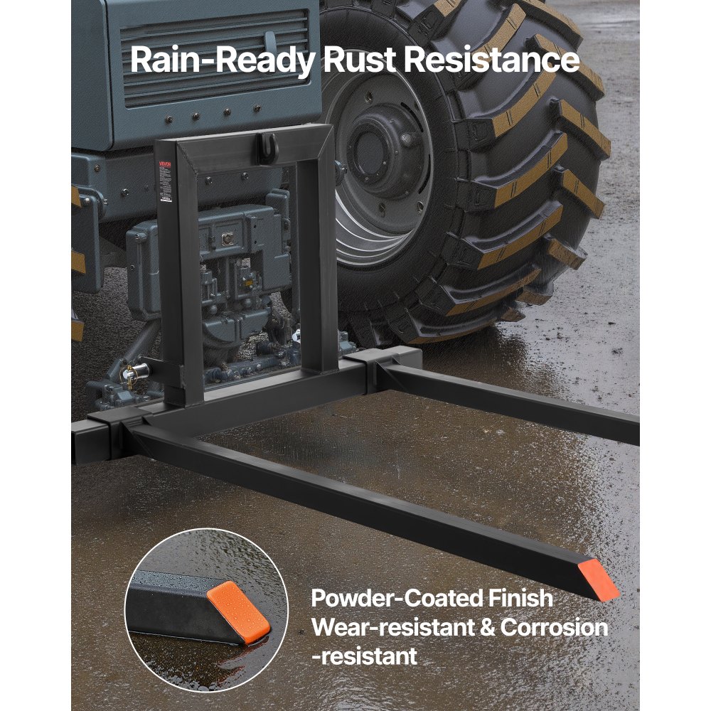 Bezpečná nosnosť: 50-palcová svorka na paletových vidliciach unesie až 680 kg a skvele sa hodí ku kompaktným traktorom kategórie 1. Toto nastavenie minimálne zaťažuje váš stroj a pomáha s ľahkosťou vykonávať každodenné pohyby na farme.
