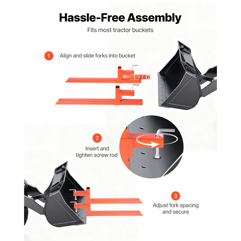 Paletové vidly VEVOR, upínanie na paletové vidly 907 kg, celková dĺžka 109 cm, rýchloupínacie vidly na traktor s vysokou nosnosťou, kompatibilné s príslušenstvom traktora, nakladacou lyžicou a šmykom riadeným nakladačom, oranžové - Skladovacie a manipulačné zariadenia