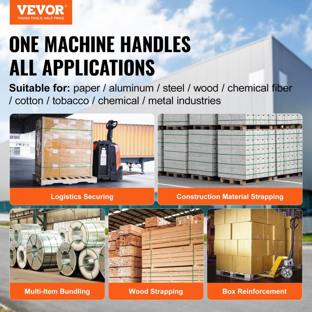 Ideálne pre rôzne odvetvia: Či už pracujete s papierom, hliníkom, oceľou, drevom, chemickými vláknami, bavlnou, tabakom, chemikáliami alebo kovovými výrobkami, náš pneumatický páskovač je tu, aby vám pomohol. Zvládne všetko od drevených dosiek a mramoru až po tehly a oceľ, čím zvyšuje vašu efektivitu a kvalitu výrobkov naprieč všetkými odvetviami.