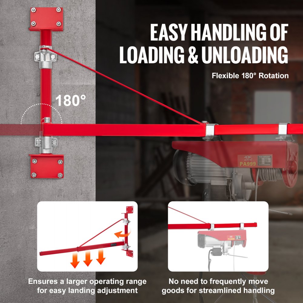 Podperné rameno elektrického kladkostroja VEVOR, maximálna nosnosť 600 kg, otočné rameno držiaka elektrického kladkostroja s tyčou, oceľový rám kladkostroja, zdvíhacie rameno lešenia otočné o 180°, zdvíhacie rameno navijaka pre dielňu, garáž - Skladovacie a manipulačné zariadenia