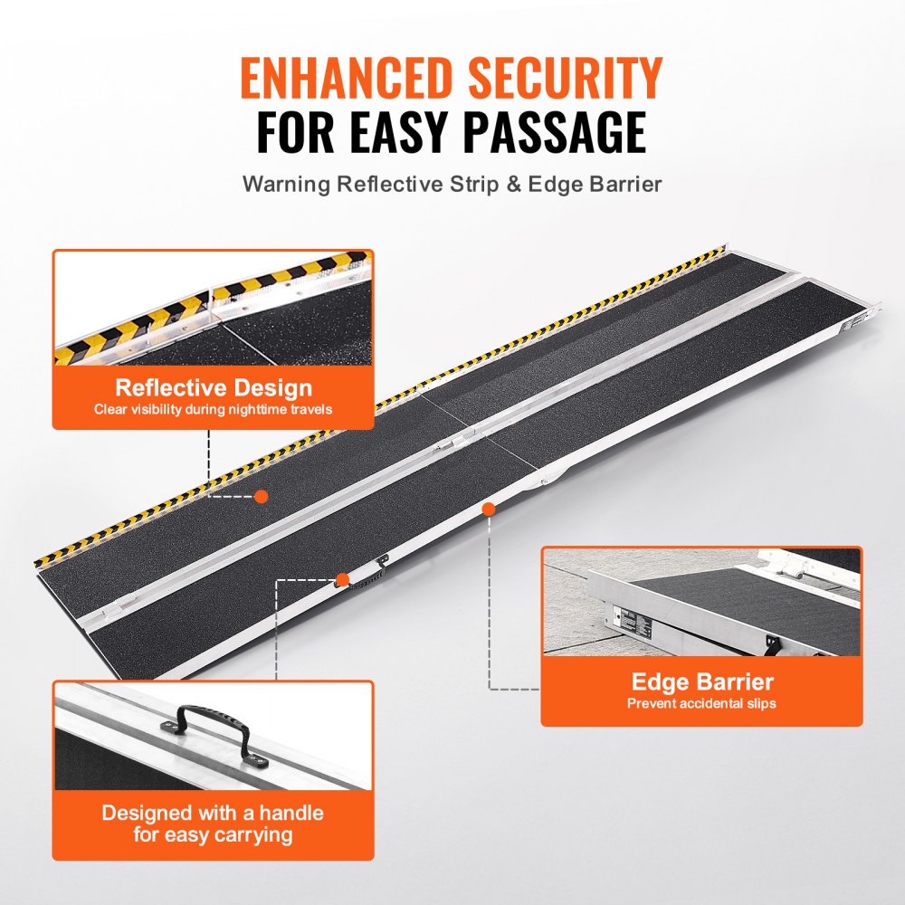 Rampa pre prenosný invalidný vozík VEVOR, 10 stôp, nosnosť 800 libier, protišmyková hliníková sklopná prahová rampa, sklopná rampa pre kolobežku pre invalidné vozíky, rampa pre invalidov pre domáce schody, schody, dvere, obrubníky
