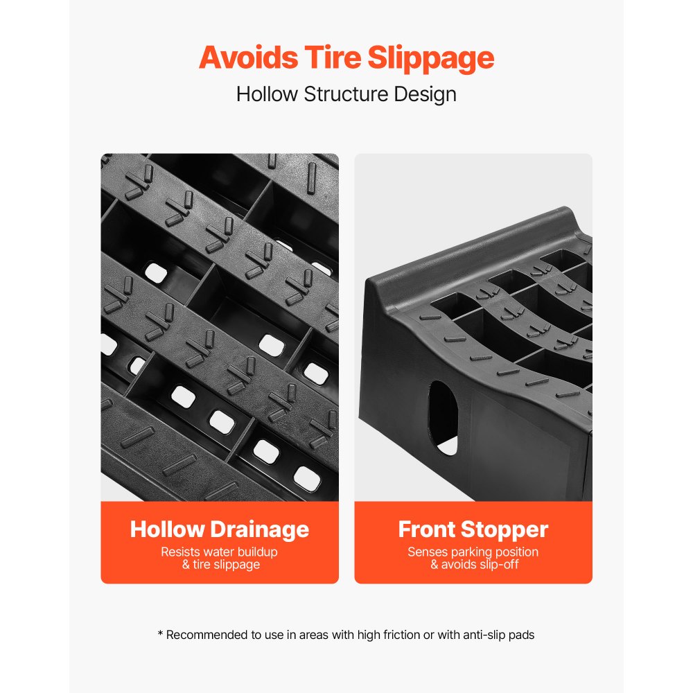 Špeciálny dizajn: Naše rampy na výmenu oleja majú voštinový povrch pre zvýšenie trenia a zlepšenie odvodňovania, čo znižuje hromadenie vlhkosti a prešmykovanie pneumatík. Zakrivený tvar bezpečne priľne k pneumatike a udržuje vozidlo stabilné a fixované na mieste.