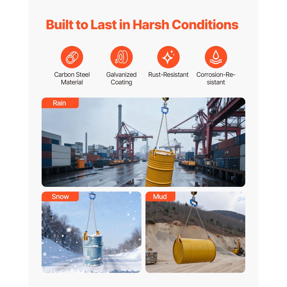 Reťazový zdvíhací stroj na sudy VEVOR, reťazový záves na zdvíhanie sudov G80 s bezpečnostným hákom, manipulácia so sudmi s nosnosťou 1 tona, zariadenie vhodné pre žeriavový vysokozdvižný vozík, zdvíhací stroj z uhlíkovej ocele na plastové a kovové sudy