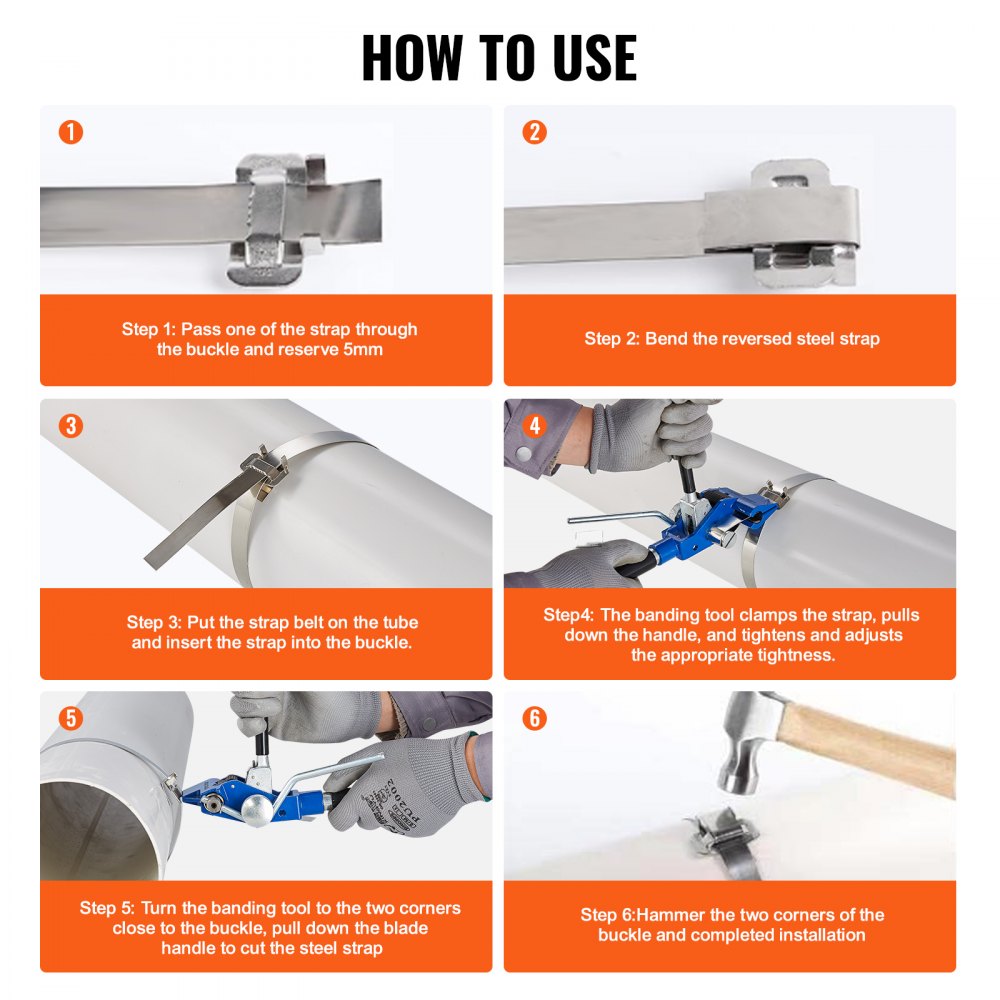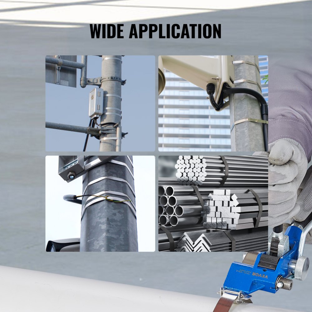 Súprava na páskovanie VEVOR s napínačom pásky, páskovanie z nehrdzavejúcej ocele 304 s dĺžkou 100 stôp, 100 kovových tesnení, sada na páskovanie paliet, páskovanie na balenie