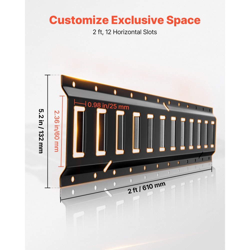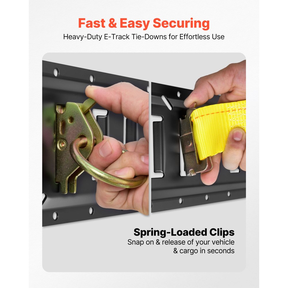 Súprava upevňovacích líšt VEVOR E-Track, 4 kusy 0,6 m koľajníc E-Track, 20 kusov, obsahuje 2 račňové popruhy, 4 O-krúžky, 4 upevňovacie prvky s D-krúžkom, 2 samostatné drážky a 8 koncových krytiek, vhodné pre garáže, dodávky a prívesy.