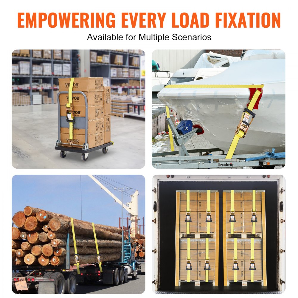 Upevňovacie popruhy VEVOR s račňou (4 ks), pevnosť v pretrhnutí 5000 lb, dvojitý J-hák, obsahuje 4 prémiové račňové upevňovacie popruhy 2\ - Skladovacie a manipulačné zariadenia