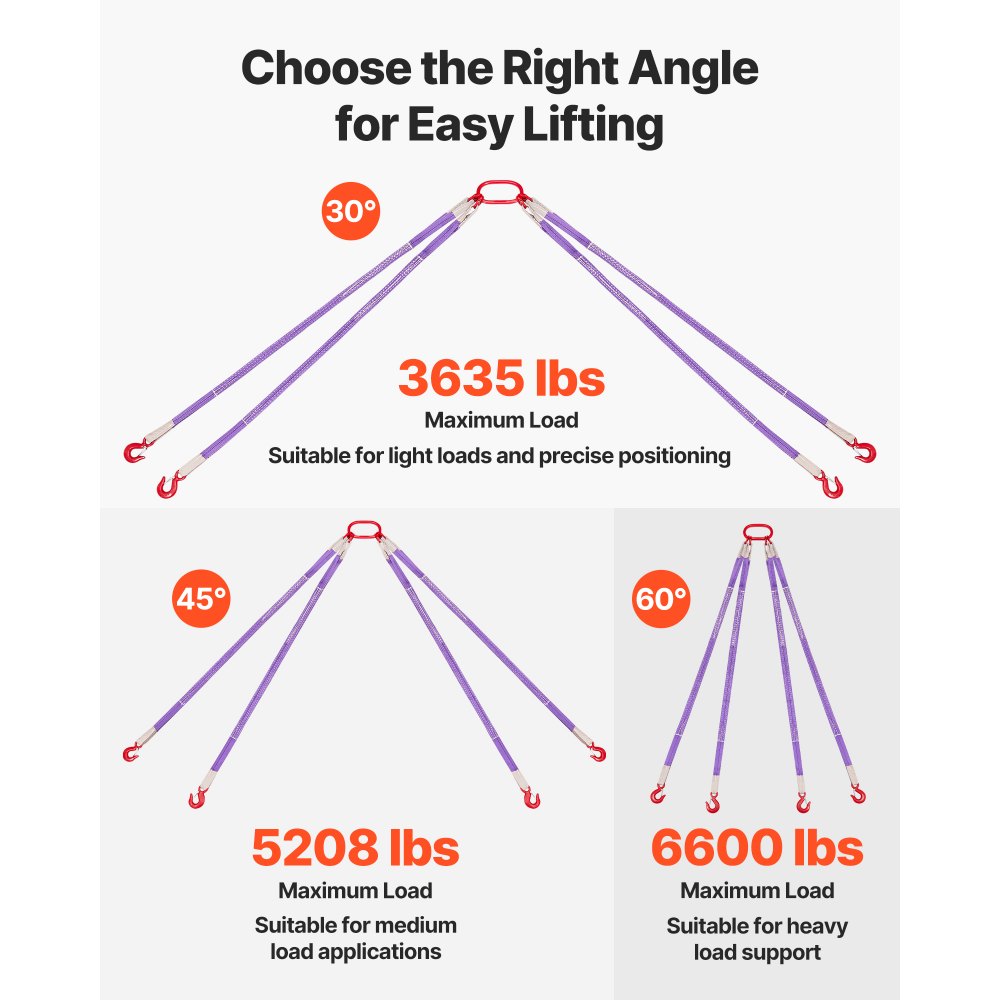 Zdvíhacie popruhy VEVOR, štvornohý polyesterový uzdený popruh s hákmi, nosnosť 3 tony, ťažký popruh na zaťaženie 5 stôp, zosilnené a odolné popruhy pre motory, žeriavy, kladkostroje a nákladné vozidlá