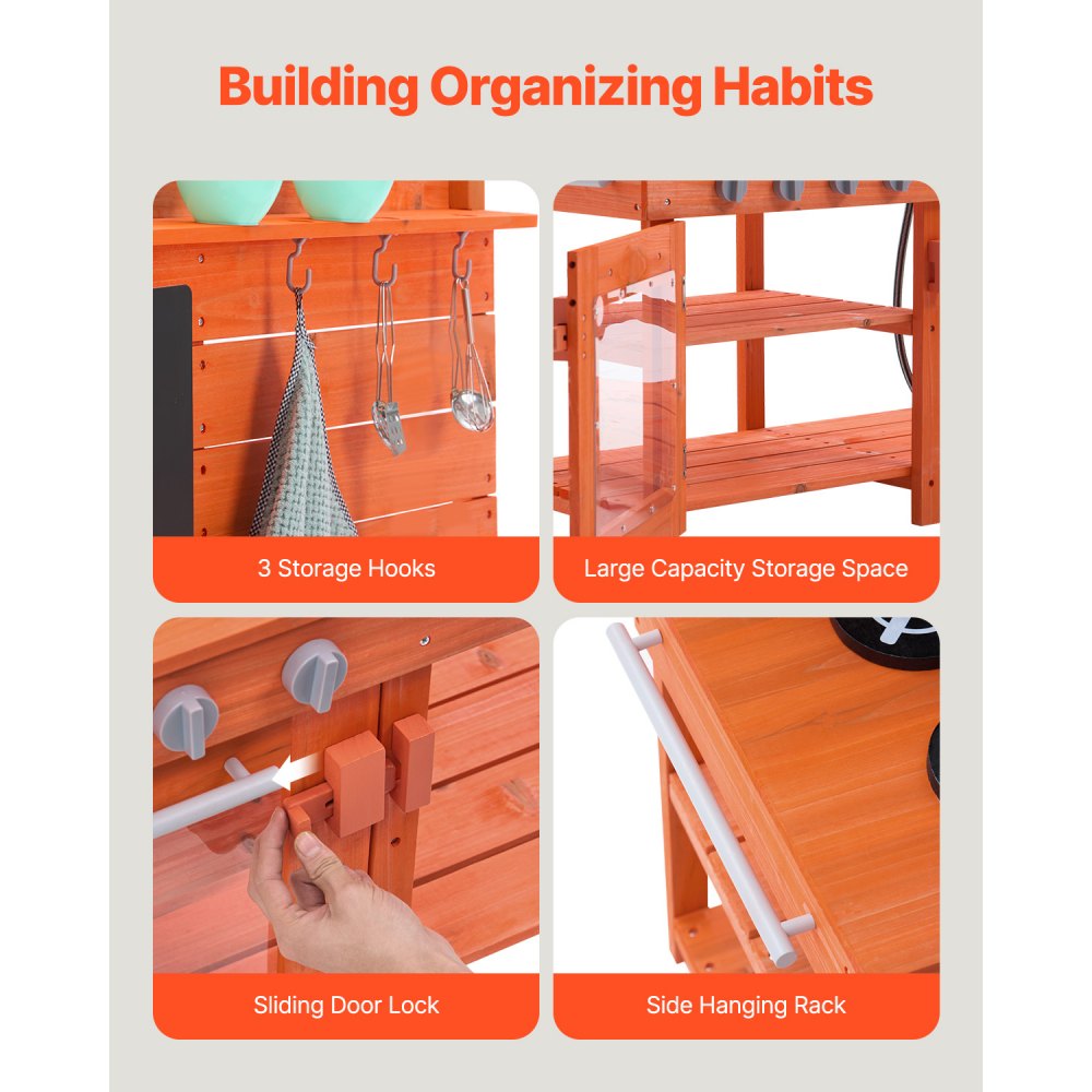 Zábavný darček pre rozvoj detí: Táto vonkajšia kuchynka na hranie je ideálna na narodeniny alebo sviatočné darčeky pre deti, či už pre chlapcov alebo dievčatá! Vďaka pracovnej doske s výškou 52 cm môžu deti ľahko dosiahnuť na svoje hracie predmety a usporiadať si ich, čo pomáha zlepšiť koordináciu ruka-oko. Priestranná pracovná plocha umožňuje deťom hrať sa s kamarátmi, objavovať radosti z prírody vonku a zlepšovať spoluprácu a sociálne zručnosti.