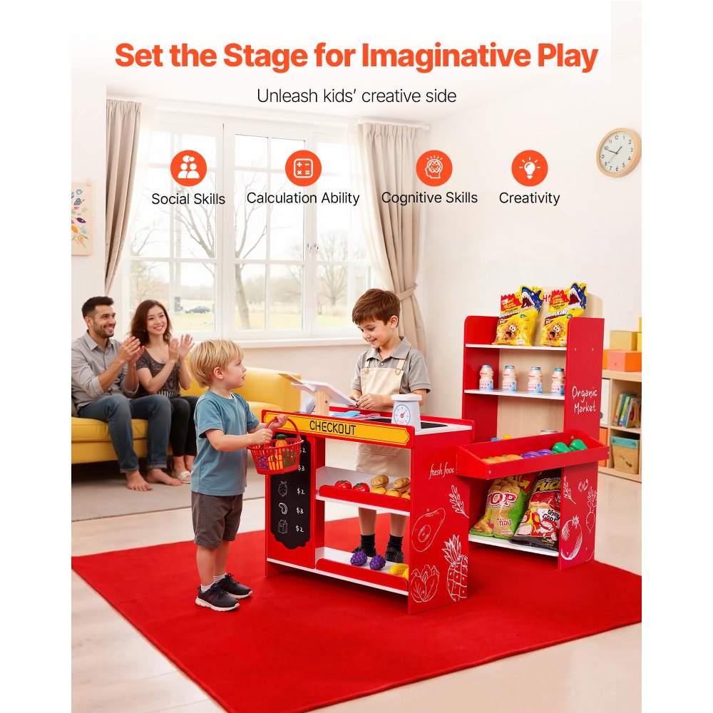 Vysokokvalitné drevo: Náš detský obchod s potravinami je vyrobený z MDF dreva, má hladké povrchy a odolnú konštrukciu, je bezpečný pre deti od 3 rokov a vyrobený tak, aby vydržal.
